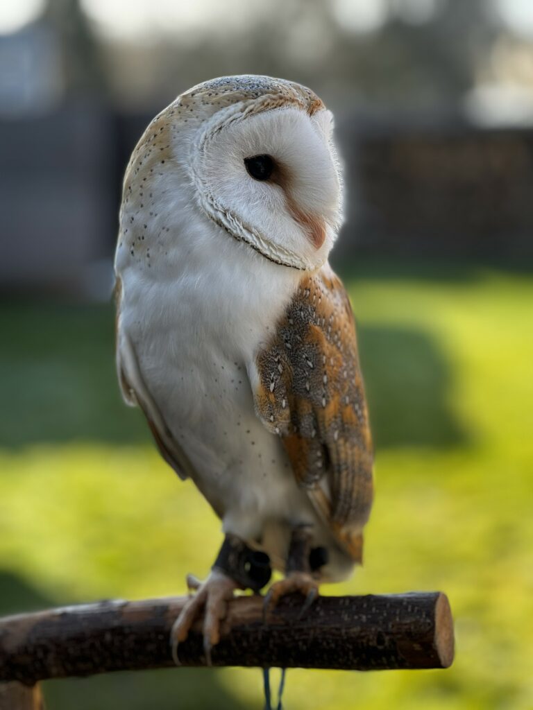 Avant de vous présenter l’espèce, j’aimerais vous présenter Bony, la chouette effraie qui est au cœur de ce projet. Bony est une Tyto alba, aussi appelée “dame blanche”, un rapace nocturne élégant et mystérieux. Elle vit dans une volière spécialement conçue pour son bien‑être, et elle m’accompagne dans mon apprentissage de la fauconnerie, une passion que je nourris depuis mon enfance.