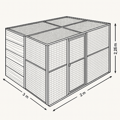 • Grillage enterré sur 20 cm tout autour pour empêcher les intrusions par fouissage (rongeurs, prédateurs)